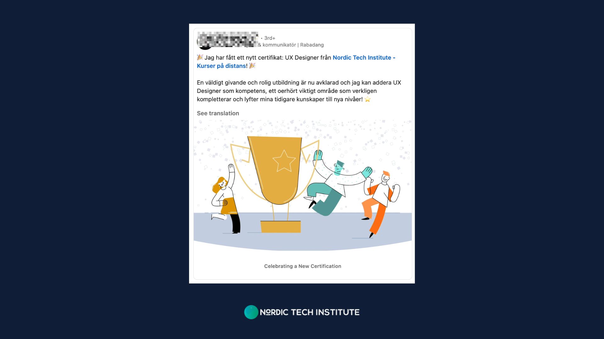Går du dessutom kursen hos oss på Nordic Tech Institute så får du ett digitalt diplom av oss som du enkelt kan ladda upp på LinkedIn.